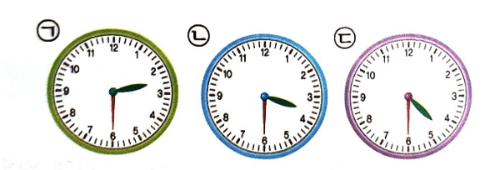 예) 3시 30분을 나타내는 시계를 찾아 기호를 써 보세요.