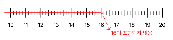 예) 16 미만인 수: 12.4, 14.2, 15.9 등과 같이 16보다 작은 수