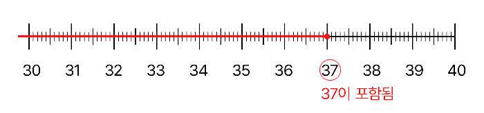 예) 37 이하인 수: 31.2, 33.4, 36.8 등과 같이 37보다 같거나 작은 수